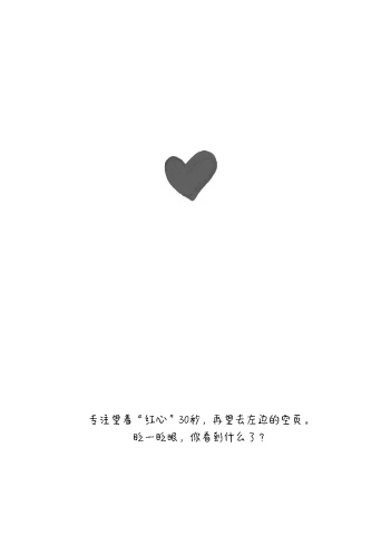 专注望着“红心”30秒,再望去左边的空页。 眨一眨眼,你看到什么了?