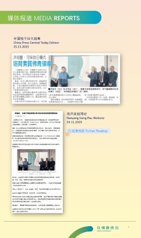媒体报道 MEDIA REPORTS 中国报今日大城事 China Press Central Today Edition 25.11.2025 南洋商报网站 Nanyang Siang Pau Website 24.11.2025 延伸阅读 Further Reading 6