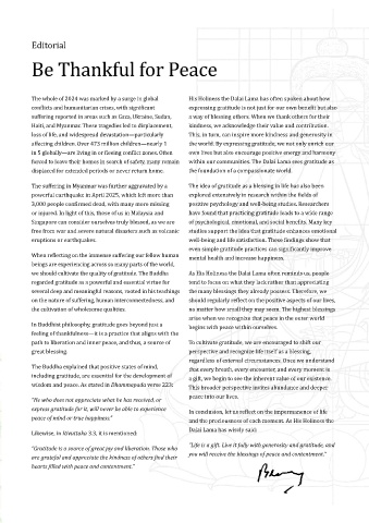 we should cultivate the quality of gratitude. The Buddha As His Holiness the Dalai Lama often reminds us, people