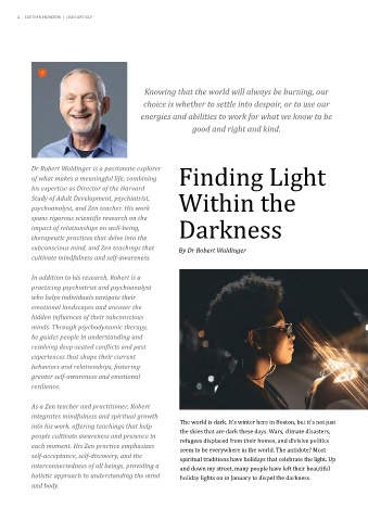 into his work, offering teachings that help The world is dark. It’s winter here in Boston, but it’s not just