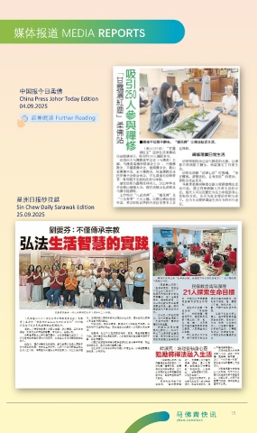 媒体报道 MEDIA REPORTS 中国报今日柔佛 China Press Johor Today Edition 04.09.2025 延伸阅读 Further Reading 星洲日报砂拉越 Sin Chew Daily Sarawak Edition 25.09.2025 15
