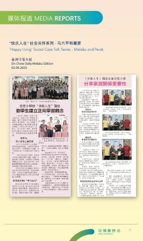 媒体报道 MEDIA REPORTS “快乐人生” 社会关怀系列 - 马六甲和霹雳 ‘Happy Living’ Social Care Talk Series - Melaka and Perak 星洲日报古城 Sin Chew Daily Melaka Edition 02.09.2025 22