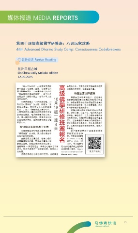 媒体报道 MEDIA REPORTS 第四十四届高级佛学研修班:八识玩家攻略 44th Advanced Dharma Study Camp: Consciousness Codebreakers 延伸阅读 Further Reading 星洲日报古城 Sin Chew Daily Melaka Edition 12.09.2025 29