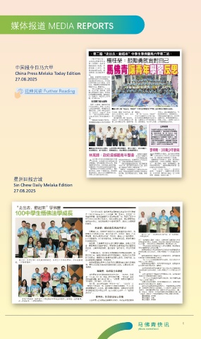 媒体报道 MEDIA REPORTS 中国报今日马六甲 China Press Melaka Today Edition 27.08.2025 延伸阅读 Further Reading 星洲日报古城 Sin Chew Daily Melaka Edition 27.08.2025 6