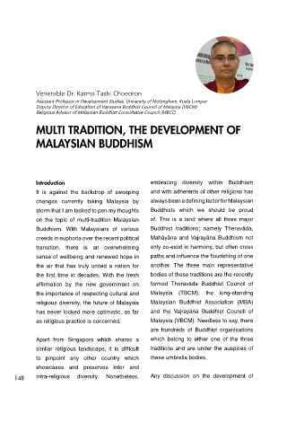 Religious Advisor of Malaysian Buddhist Consultative Council (MBCC)                                                          two millennia. Moreover, for Malaysian       most  closely  associated with present-