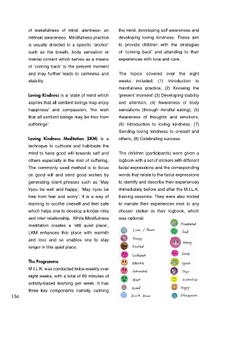 Loving Kindness is a ‘state of mind which ‘present’ moment’,(3) Developing stability ‘Lousy’ are prominent at check-in but drop after the training session.