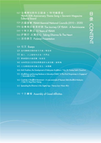 011 马来西亚佛教青年总会宗教导师 斯里沙拉南卡拉长老 CONTENT 066护教行 点滴在心 Taking Dharma To The Heart CONTENT