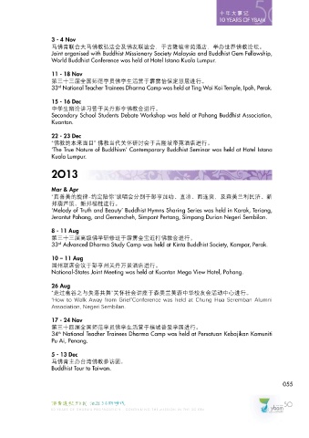 32 Advanced Dharma Study Camp was held at Shah Alam Buddhist Society, Selangor. ‘How to Walk Away from Grief’Conference was held at Chung Hua Seremban Alumni