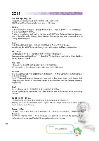 马佛青联合其他佛教组织,举办“MH370牵动全世界人心”万人念诵大会。 PELITA Psychological Guidance Unit expanded hotline counseling service on every Thursday.