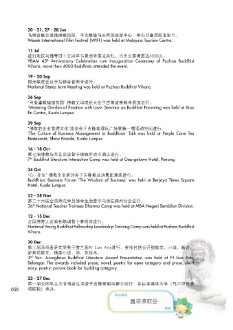 7 Buddhist Literature Interaction Camp was held at Georgetown Hotel, Penang. 12 Buddhist Writing Camp was held at Kinta Buddhist Society, Perak.