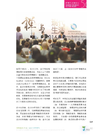 便开始积极筹办一场中文的国际佛教论 来西亚佛教开创了一番新景象。从那以后 文研讨会。然而2012年至今,长达七年的 的“科学与现代良知”。