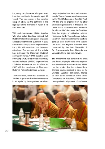 for young people (those who graduated the participation from local and overseas Buddhist forum. Hence, the ‘2004 issues and the current needs of the