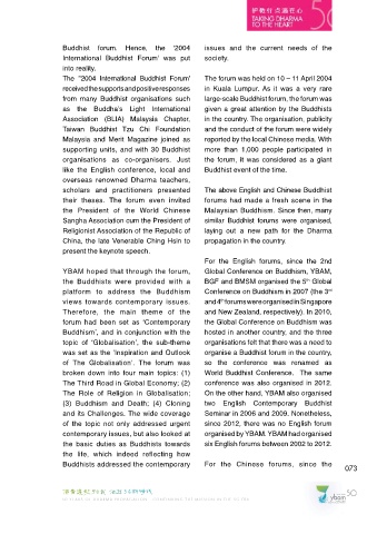 072 Buddhists addressed the contemporary For the Chinese forums, since the 073