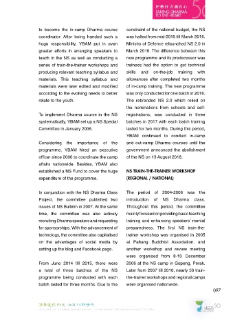 of the NS, trainees were arranged by the YBAM was officially appointed by the issues of NS Bulletin in 2007. At the same Throughout this period, the committee
