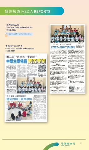 媒体报道 MEDIA REPORTS 星洲日报古城 Sin Chew Daily Melaka Edition 19.08.2025 延伸阅读 Further Reading 中国报今日马六甲 China Press Melaka Today Edition 19.08.2025 18