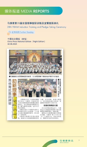 媒体报道 MEDIA REPORTS 马佛青第28届全国理事就职训练及宣誓就职典礼 28th YBAM Induction Training and Pledge-Taking Ceremony 延伸阅读 Further Reading 中国报全国版(夜报) China Press National Edition(Night Edition) 10.08.2025 21