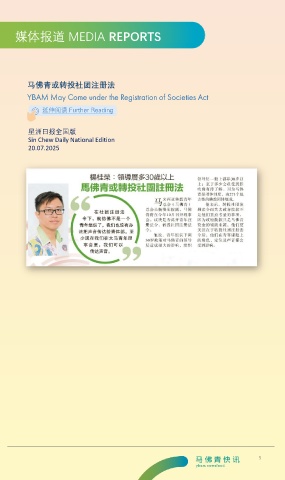 媒体报道 MEDIA REPORTS 马佛青或转投社团注册法 YBAM May Come under the Registration of Societies Act 延伸阅读 Further Reading 星洲日报全国版 Sin Chew Daily National Edition 20.07.2025 5