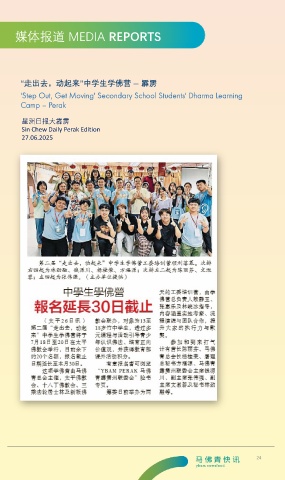 媒体报道 MEDIA REPORTS “走出去,动起来”中学生学佛营 — 霹雳 'Step Out, Get Moving' Secondary School Students' Dharma Learning Camp – Perak 星洲日报大霹雳 Sin Chew Daily Perak Edition 27.06.2025 24