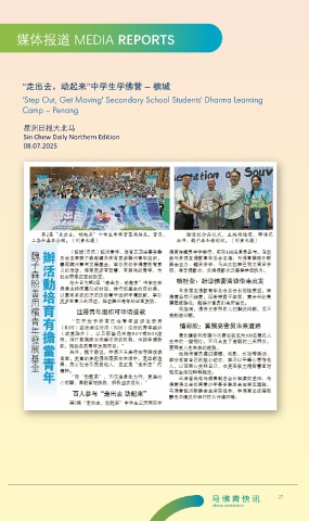 媒体报道 MEDIA REPORTS “走出去,动起来”中学生学佛营 — 槟城 'Step Out, Get Moving' Secondary School Students' Dharma Learning Camp – Penang 星洲日报大北马 Sin Chew Daily Northern Edition 08.07.2025 27