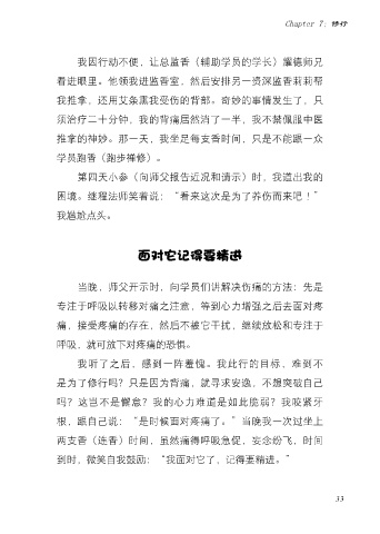专注于呼吸以转移对痛之注意,等到心力增强之后去面对疼