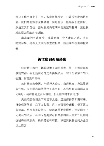 她只工作至晚上十一点。客房还算清洁,只是没预期的热水