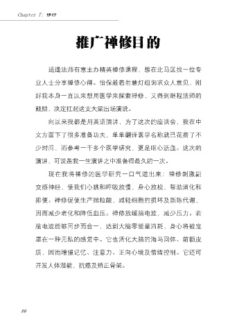 因而减少老化和降低血压。禅修放缓脑电波,减少压力。若