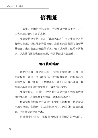 “医生,我相信我已痊愈,不需要进行绕道手术了。”