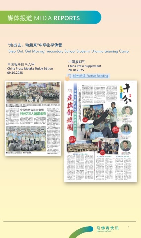 媒体报道 MEDIA REPORTS “走出去,动起来”中学生学佛营 ‘Step Out, Get Moving’ Secondary School Students' Dharma Learning Camp 中国报副刊 中国报今日马六甲 China Press Supplement China Press Melaka Today Edition 28.10.2025 09.10.2025 延伸阅读 Further Reading 7