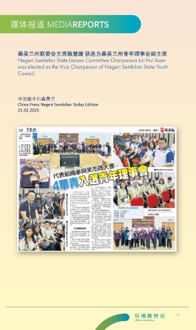 森美兰州联委会主席赖慧璇 获选为森美兰州青年理事会副主席 Negeri Sembilan State Liaison Committee Chairperson Lai Hui Xuan was elected as the Vice Chairperson of Negeri Sembilan State Youth Council 中国报今日森美兰 China Press Negeri Sembilan Today Edition 25.02.2025 16