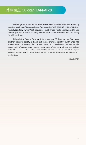 The Google Form petition list includes many Malaysian Buddhist monks and lay