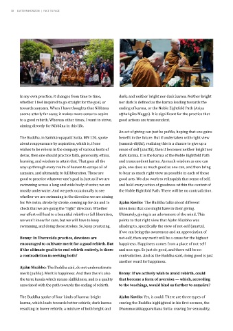 encouraged to cultivate merit for a good rebirth. But   happiness. Happiness comes from a place of not-self
