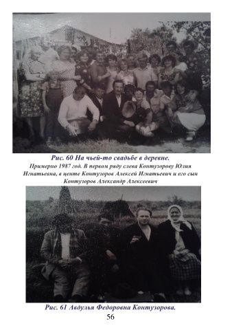 Рис. 60 На чьей-то свадьбе в деревне. Примерно 1987 год. В первом ряду слева Контузорову Юлия Игнатьевна, в центе Контузоров Алексей Игнатьевич и его сын Контузоров Александр Алексеевич Рис. 61 Авдулья Федоровна Контузорова. 56