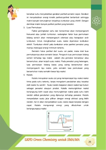 frekuensi atau jumlah tumbukan, sedangkan faktor luas permukaan