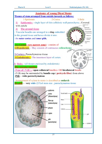 Anatomy of young Dicot Stems