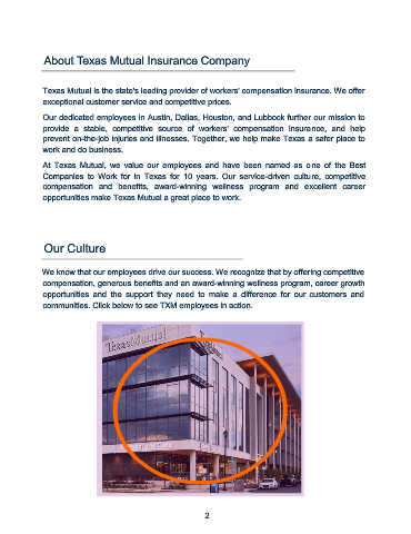 At Texas Mutual, we value our employees and have been named as one of the Best