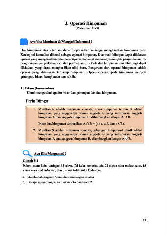 pengurangan (–), perkalian (×), dan pembagian ( : ). Pada dua himpunan atau lebih juga dapat