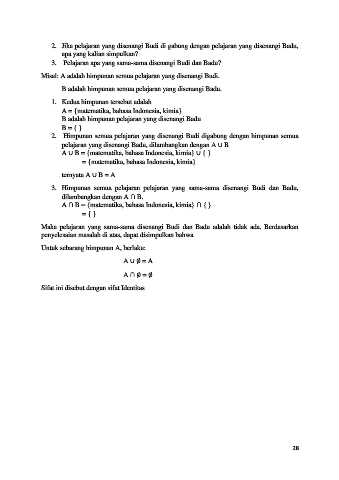 2. Himpunan semua pelajaran yang disenangi Budi digabung dengan himpunan semua