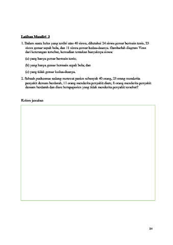 1. Dalam suatu kelas yang terdiri atas 40 siswa, diketahui 24 siswa gemar bermain tenis, 23