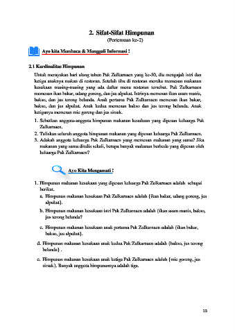 2. Tuliskan seluruh anggota himpunan makanan yang dipesan keluarga Pak Zulkarnaen.