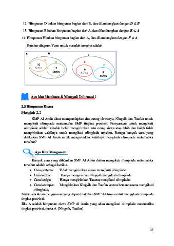 12. Himpunan F bukan himpunan bagian dari A, dan dilambangkan dengan F ⊄ A