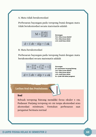 Sebuah teropong bintang memiliki focus okuler 5 cm.