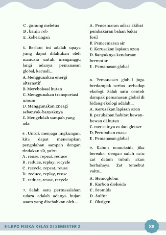 6 . Untuk menjaga lingkungan, D. Perubahan cuaca