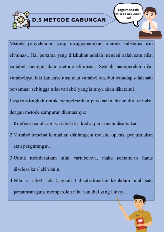 variabel menggunakan metode eliminasi. Setelah memperoleh nilai