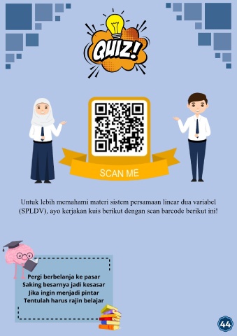 Untuk lebih memahami materi sistem persamaan linear dua variabel (SPLDV), ayo kerjakan kuis berikut dengan scan barcode berikut ini!