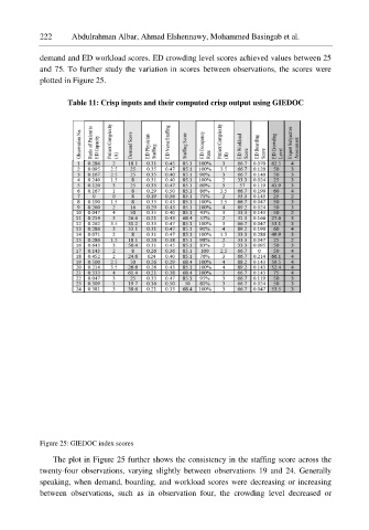 demand and ED workload scores. ED crowding level scores achieved values between 25