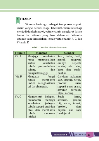 Tabel 1. 1 Manfaat dan Sumber Vitamin