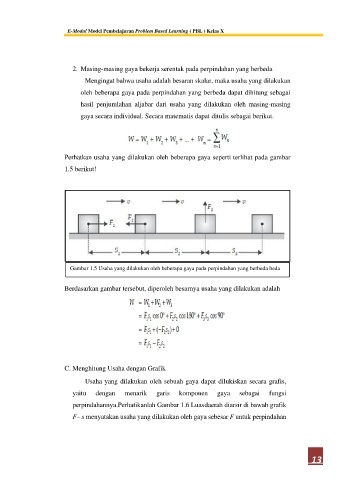 Gambar 1.5 Usaha yang dilakukan oleh beberapa gaya pada perpindahan yang berbeda beda