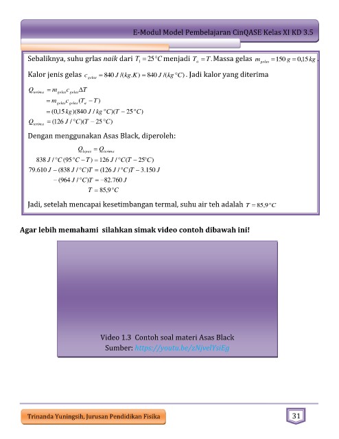 Jadi, setelah mencapai kesetimbangan termal, suhu air teh adalah T = 85 9 , C