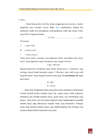 pengertian daya tersebut? Secara fisika daya didefenisikan sebagai laju