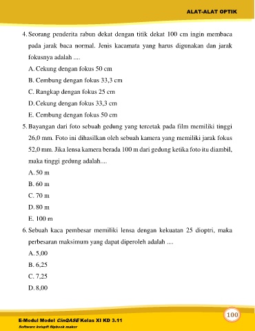 4. Seorang penderita rabun dekat dengan titik dekat 100 cm ingin membaca
